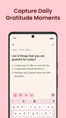 Aplikacja Gratitude to starannie zaprojektowane narzędzie do samopielęgnacji, które pomaga Ci skupić się na zdrowiu psychicznym. Odkryj moc wdzięczności i popraw swoje samopoczucie każdego dnia. Pielęgnuj pozytywne myśli i buduj odporność psychiczną dzięki tej intuicyjnej aplikacji.