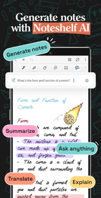 Odkryj moc Noteshelf AI, Twojego inteligentnego asystenta, który bez wysiłku generuje notatki na dowolny temat, podsumowuje całe strony, tłumaczy tekst na różne języki i wyjaśnia złożone pojęcia. Noteshelf 3 dba również o bezpieczeństwo i dostępność Twoich danych – zabezpiecz swoje notatki hasłem, Face ID lub Touch ID. Synchronizuj je z Google Drive, aby mieć do nich dostęp na wszystkich swoich urządzeniach z Androidem. Automatyczna kopia zapasowa do popularnych usług chmurowych, takich jak Google Drive, OneDrive, Dropbox i WebDAV, oraz możliwość automatycznego publikowania notatek w Evernote, zapewniają, że Twoje ważne informacje są zawsze bezpieczne i dostępne. Zespół fluidtouch.biz nieustannie pracuje nad nowymi funkcjami, aby Twoje doświadczenie z Noteshelf 3 było coraz lepsze.