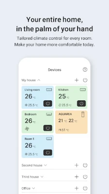 Przenieś komfort cieplny swojego otoczenia na wyższy poziom dzięki zaawansowanej aplikacji, która daje Ci pełną kontrolę. Niezależnie od tego, czy chcesz sterować klimatyzatorami, wydajnymi pompami ciepła powietrze-woda, czy wentylatorami, ta intuicyjna platforma umożliwia zdalne zarządzanie wszystkimi urządzeniami HVAC. Odkryj bogactwo trybów pracy, pozwalając na idealne dopasowanie warunków wewnętrznych do Twoich preferencji. Stwórz atmosferę idealną dla siebie, ustawiając optymalną temperaturę jeszcze zanim wrócisz do domu czy biura.