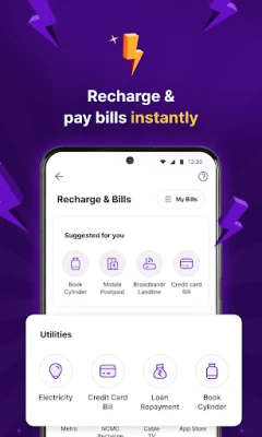 PhonePe to kompleksowa aplikacja płatnicza. Korzystaj z BHIM UPI, kart kredytowych, debetowych i portfela, aby doładować telefon, opłacić rachunki. Dokonuj natychmiastowych płatności w sklepach stacjonarnych i online. Inwestuj w fundusze wzajemne i kupuj plany ubezpieczeniowe, w tym ubezpieczenia samochodu i motocykla.