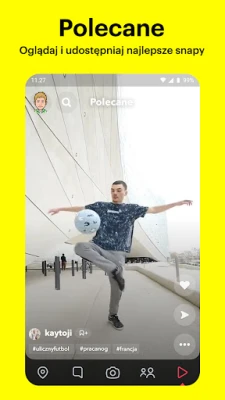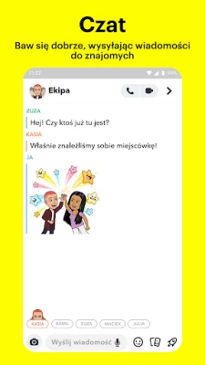 Snapchat to dynamiczna platforma, która natychmiast przenosi Cię w samo centrum akcji. Po uruchomieniu, aparat jest od razu gotowy do uchwycenia spontanicznych chwil – wystarczy dotknąć, by zrobić zdjęcie, lub przytrzymać, by nagrać film. Wyraź swoją kreatywność za pomocą tysięcy unikalnych nakładek, filtrów, spersonalizowanych Bitmoji i innych narzędzi, które są stale wzbogacane przez kreatorów Snapchat i aktywną społeczność. Twórz wizualne opowieści, które najlepiej oddają Twój nastrój i styl.