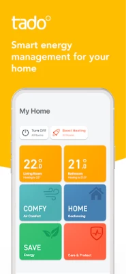 Z tado° Twój dom staje się inteligentniejszy. Łatwo i wygodnie steruj ogrzewaniem, klimatyzacją oraz pompą ciepła, oszczędzając energię i pieniądze. Pomóż środowisku, zmniejszając zużycie i ciesząc się komfortem zarządzania domem.